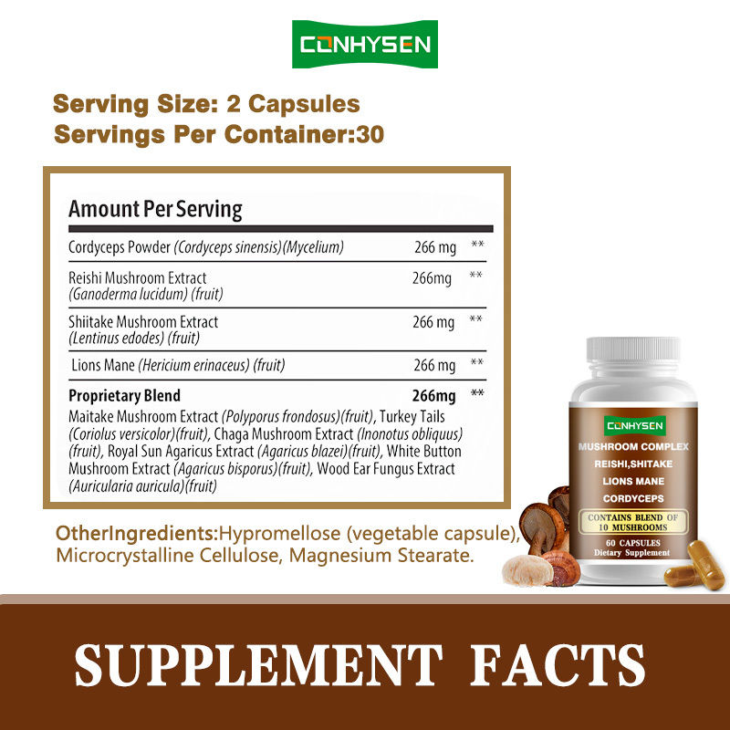 | Hoofdingrediënt | Cordyceps Poeder, Reishi Paddenstoel Extract, Shiitake Paddenstoel Extract, Lion's Mane | ||||