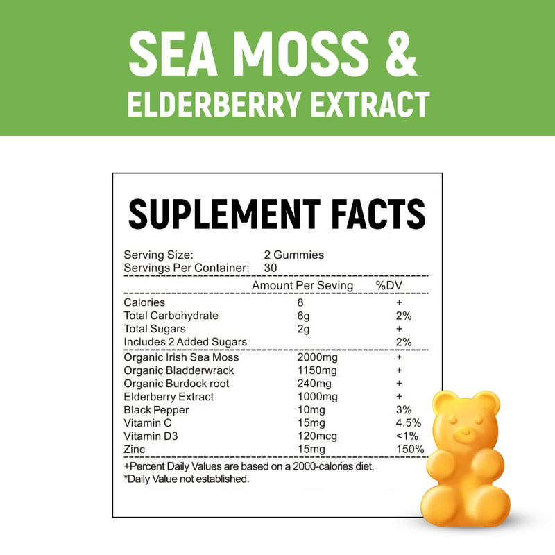 Biologische Ierse zeemos, vitamine C, vitamine D3, zink, biologische blaaswreek, biologische bordeauxwortel, ealderijenextract, zwarte peper