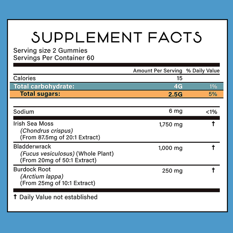 Ierse zee-moos, bladerwrack, burdockwortel, natrium