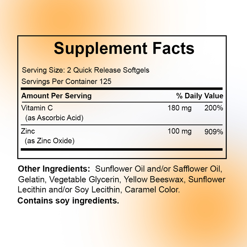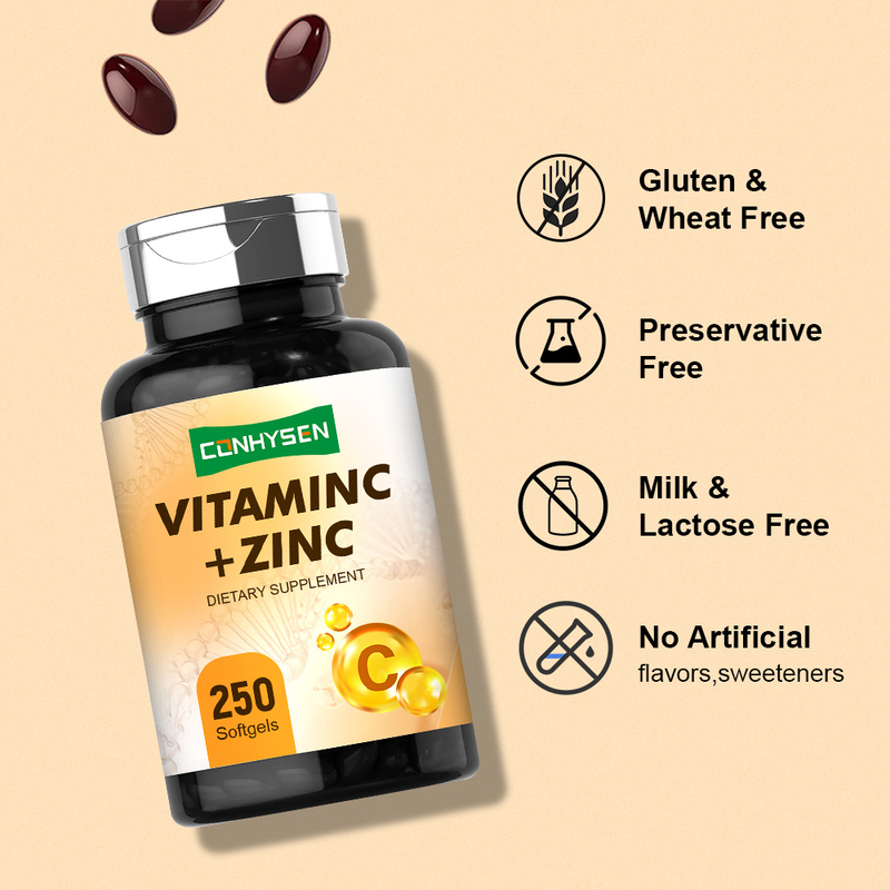 Vitamine C Softgels met zink Groothandelsprijs Antioxidant Support Custom