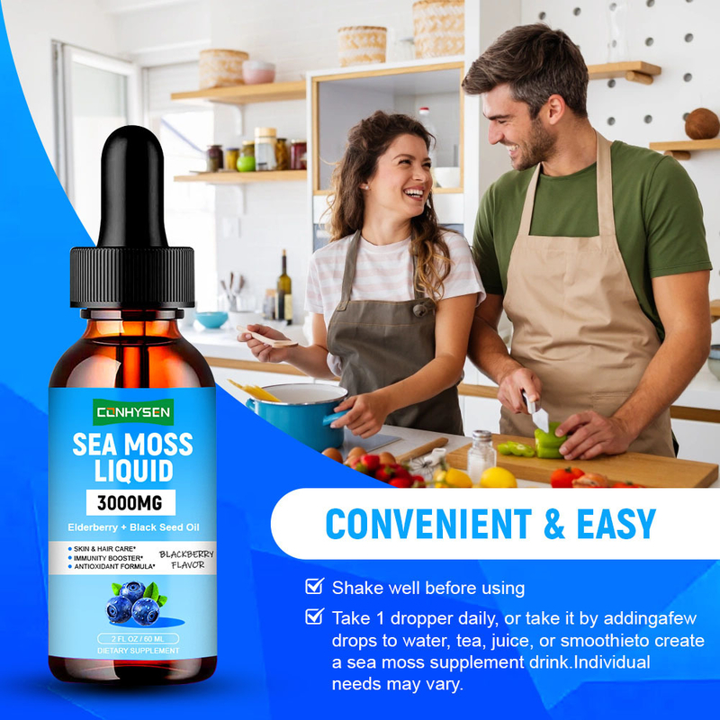 Guangdong Kangsheng Pharmaceutical Technology Co., Ltd.heeft Sea Moss Liquid Drops gelanceerd, een natuurlijk gezondheids supplement van mariene plantenessentie. This product is made from high-quality seaweed (algae) from the North Atlantic Ocean as raw materials and uses advanced low-temperature extraction technology to fully retain 92 kinds of minerals and vitamins and other nutrients in the seaweedDit product is 100% natuurlijk in samenstelling. De vloeibare vorm wordt gemakkelijker opgenomen door het menselijk lichaam.Langdurig gebruik helpt om de in het dagelijkse dieet ontbrekende mariene mineralen aan te vullen, de gezondheid van de schildklier te ondersteunen, de immuniteit te verbeteren, de darmfunctie te verbeteren,en helpt de huid elasticiteit en gewrichtsflexibiliteit te behouden.