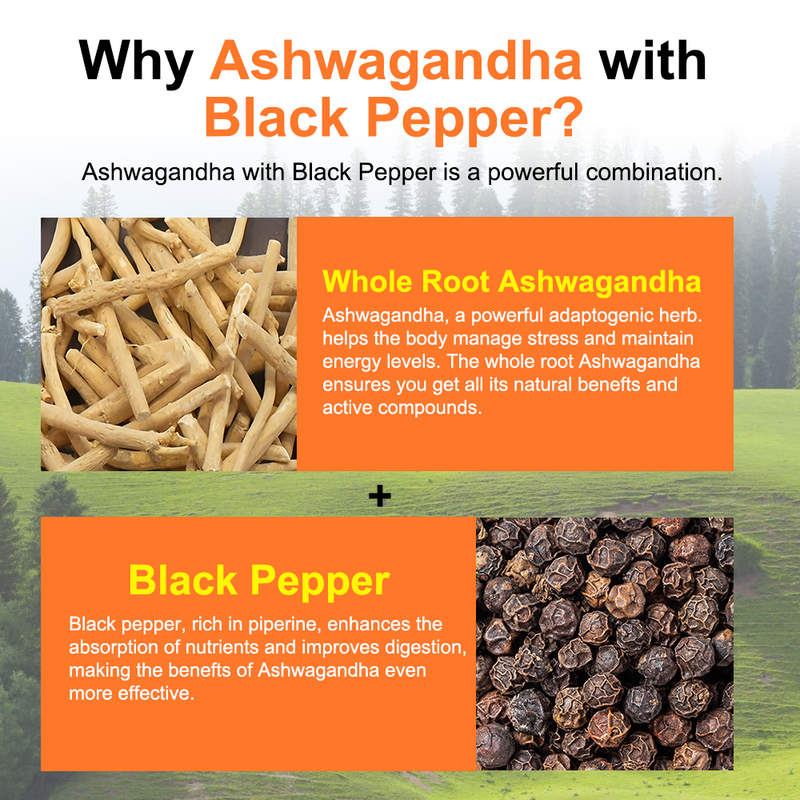 Ashwagandha met zwarte peper Stressvermindering Mentale helderheid