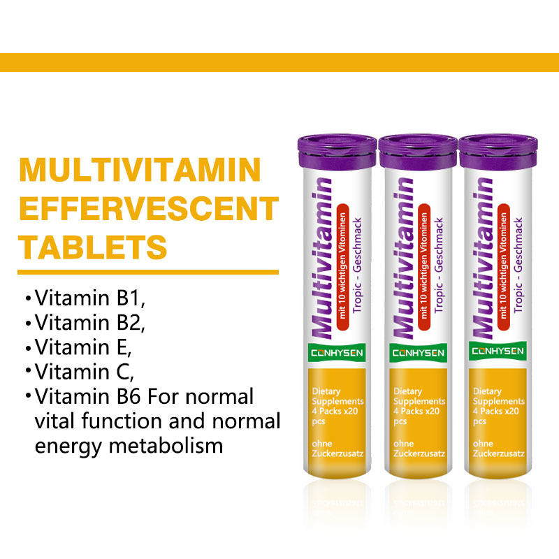 Guangdong Kangsheng Pharmaceutical Technology Co., Ltd.ontwikkelt deze uitgebreide multivitamine bruisende tablet met 12 essentiële vitaminen en 8 essentiële mineralen.De wetenschappelijke formulering van het bedrijf omvat geoptimaliseerde concentraties B-vitamines (B1, B2, B6, B12) en vitamine C, speciaal ontworpen om het normale energiemetabolisme te ondersteunen en vermoeidheid te verminderen door verbeterde mitochondriale functie.