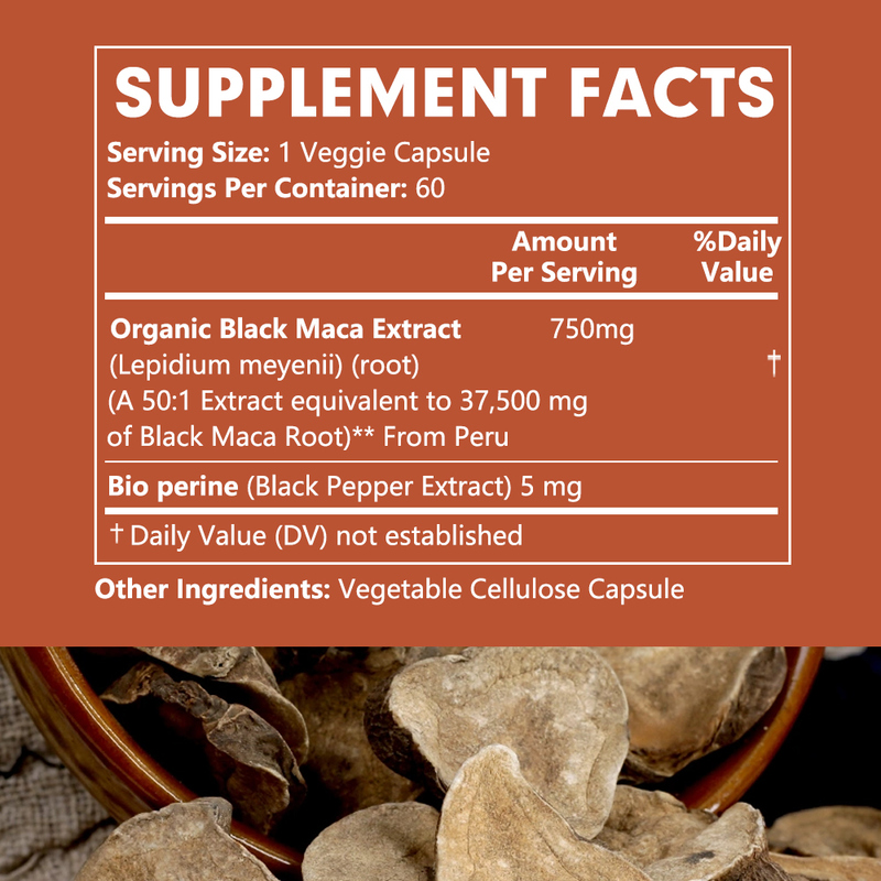 Fabrikant Custom Zwarte Maca Energie Uithoudingsvermogen Prestaties Libido Ondersteuning